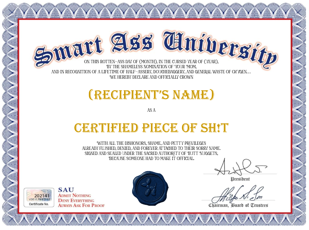 Sh!t Certificate